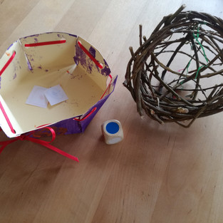 Nun wird abwechselnd gewürfelt und man darf sich einen Gegenstand der entsprechenden Farbe in sein Nest legen.